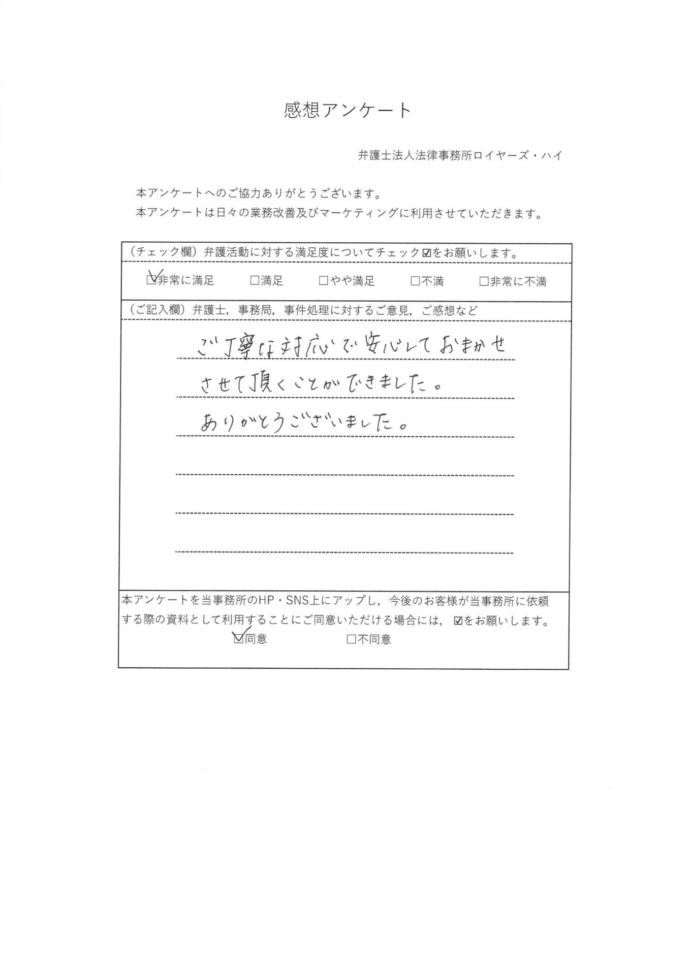 (50代 女性 会社員)「ご丁寧な対応で安心しておまかせさせて頂くことができました。ありがとうございました。」