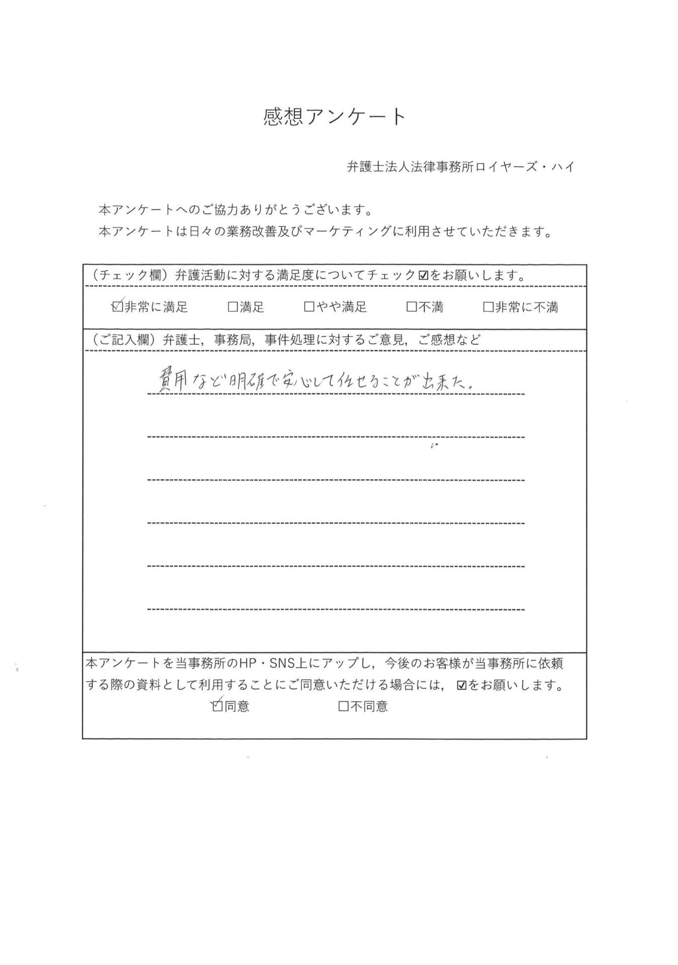 (40代 男性 会社員)「費用など明確で安心して任せることが出来た。」 【口コミ】- 不倫の慰謝料に強い大阪(なんば・梅田)の弁護士法人 ロイヤーズハイ