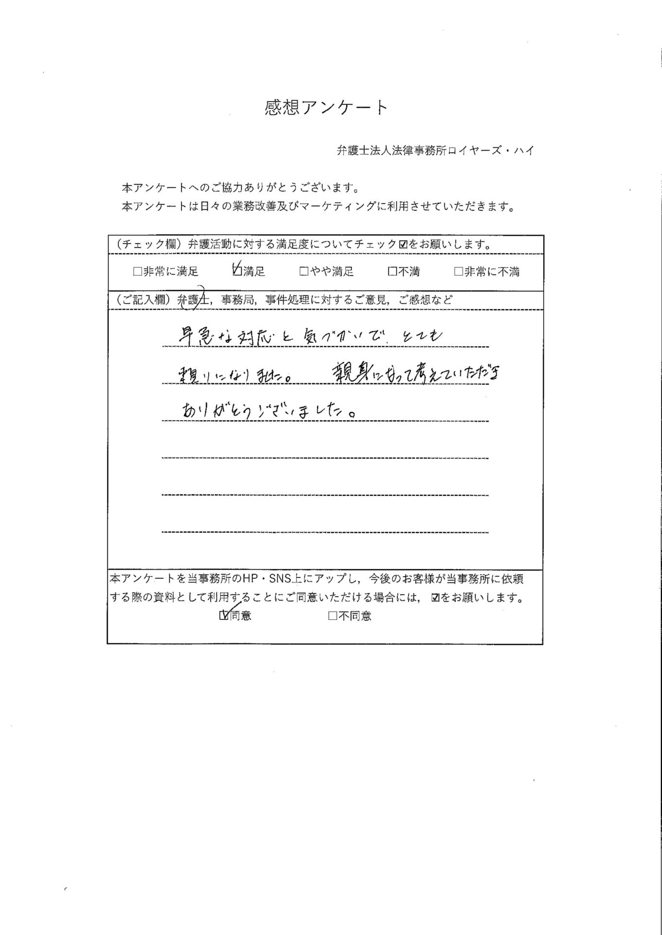 (40代 男性 会社員)「早急な対応と気づかいで、とても頼りになりました。親身になって考えていただきありがとうございました。」