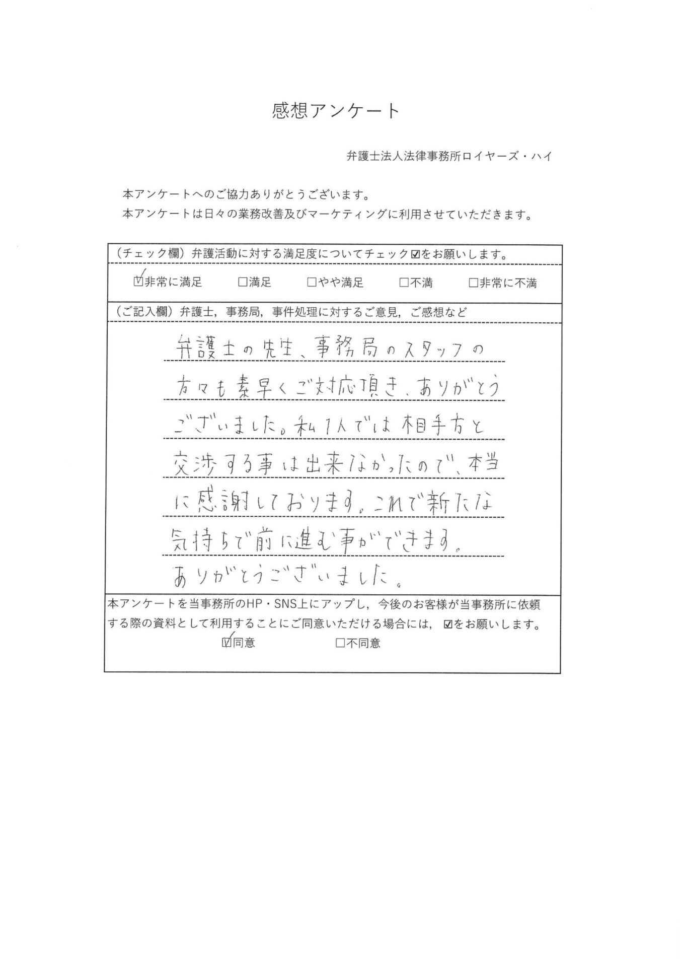 弁護士の先生、事務局のスタッフの方々も素早くご対応頂き、ありがとうございました。